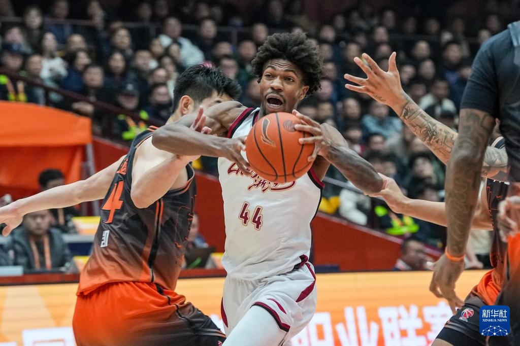 3月16日,浙江稠州金租队球员约翰逊(右)在比赛中争球。新华社记者 朱峥 摄