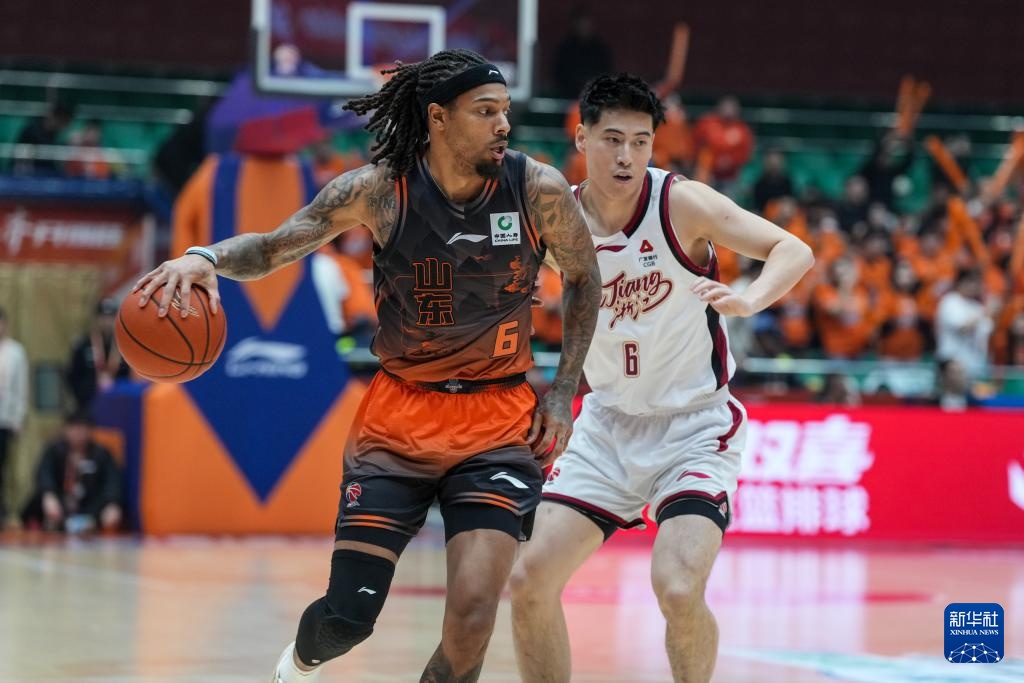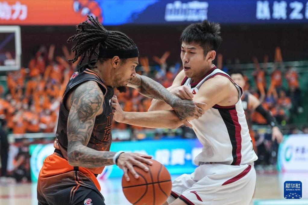 3月16日,山东高速队球员珀塞尔(左)在比赛中突破。新华社记者 朱峥 摄
