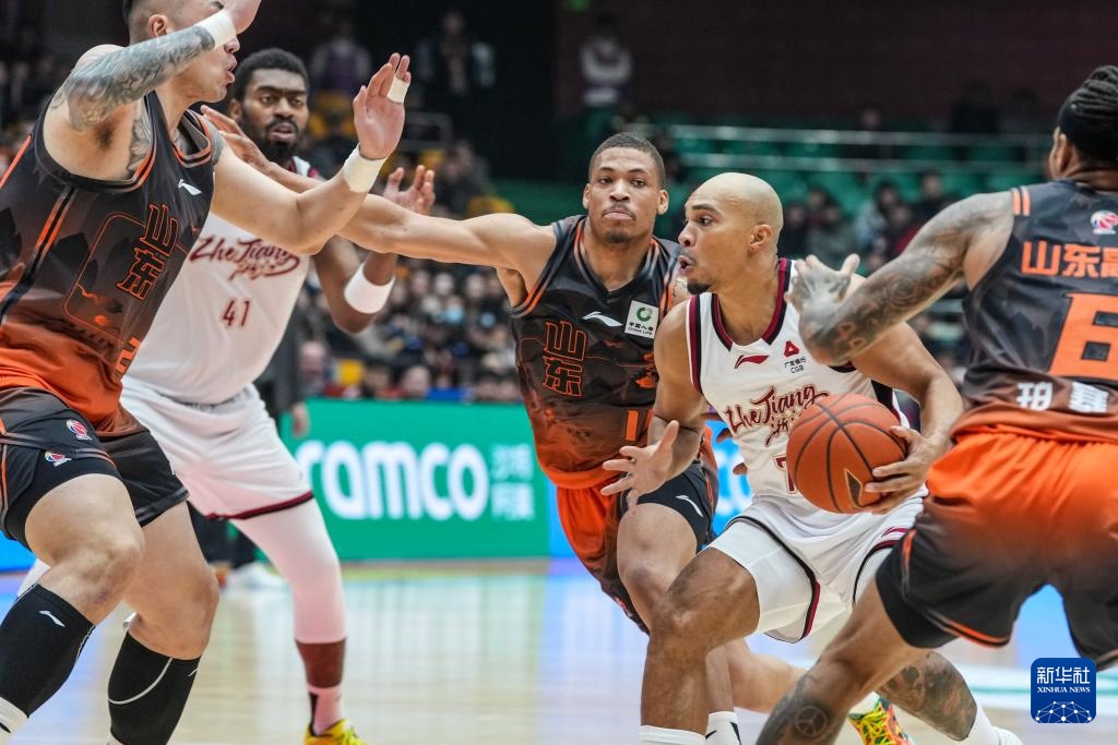 3月16日,浙江稠州金租队球员安德鲁斯(右二)在比赛中突破。新华社记者 朱峥 摄